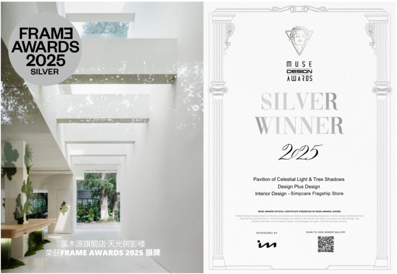 从建筑设计到空间体验,从材质选择到业态组合,“天光树影楼”以独特的“东方美学的当代表达”理念,获得了政府部门和国际设计界的双重认可。该项目不仅获得了荷兰FRAME AWARDS银奖、美国MUSE设计奖银奖等殊荣,更成为今年中国新零售空间中可圈可点的标杆之作。