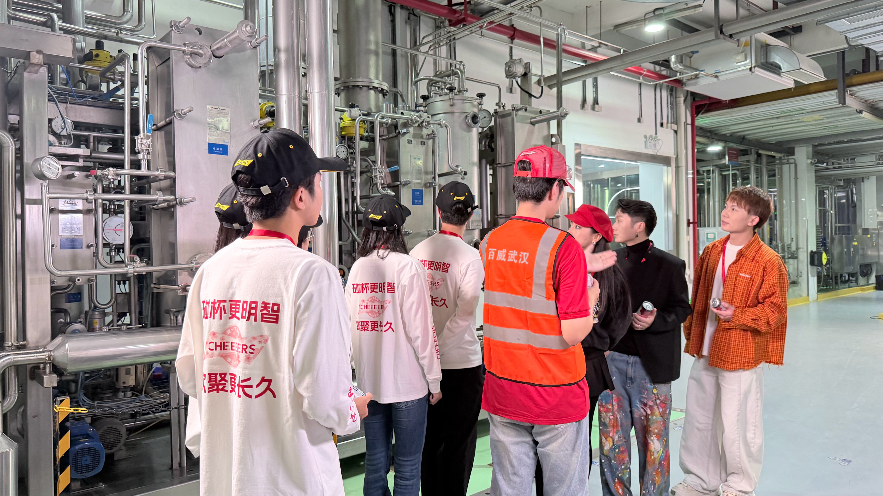 为助力"明智饮酒"理念在年轻群体中传播,百威中国特邀武汉本地高校的成年大学生担任"明智饮酒推广大使"。这批年轻代表从探访百威武汉工厂起步,在深入了解无醇啤酒酿造工艺的过程中,进一步认同"明智饮酒"的价值观。