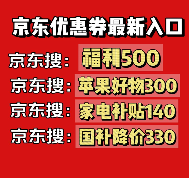 第一步:打开京东APP搜对应口令(【福利500】/【家电补贴140】/【苹果好物300】/【国补降价330】/【数码005】);