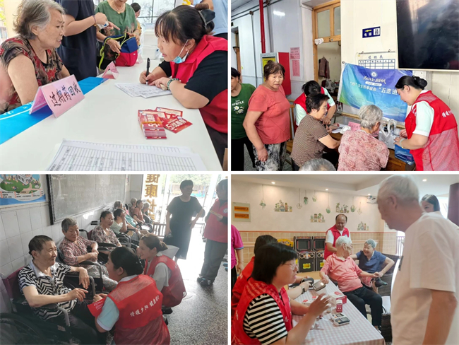 在活动现场,老人们纷纷就健康问题提出咨询。“我最近血压有点高”,“这药放久了还能吃吗”......执业药师团队始终耐心细致地解答每一个问题,为每位老人进行血压、血糖等检测,详细记录健康数据,并根据异常情况给出个性化建议。